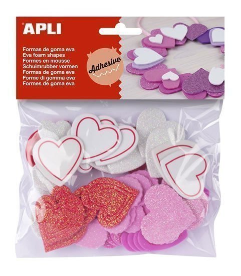 Srdíčka v různobarevném provedení se třpytkami. Materiál: měkká a odolná pěnovka. Snadná aplikace díky samolepicí ploše. V balení různé barevné dekory a velikosti. Celkem 52 kusů.