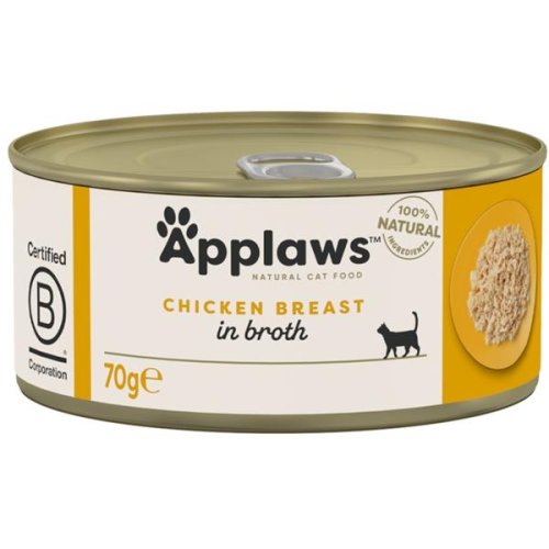 Konzerva Applaws je lehce stravitelné, nutričně vysoce hodnotné, přirozeně bezlepkové, hypoalergenní a hlavně velmi chutné krmení! 100% přírodní krmivo bez umělých konzervačních látek, barviv nebo dochucovadel. Kvalitu poznáte na první pohled po otevření konzervy: přirozená konzistence trhaného masa z kuřecích prsou v lahodném kuřecím vývaru vás přesvědčí a vaši kočku nadchne. Maso pochází z kuřat, která jsou chována ve volných výbězích, krmena přirozeně bez použití hormonů a antibiotik, jsou zdravá a v potravinářské kvalitě. Složení: 75 % kuřecí prsa, kuřecí vývar, rýže. Analytické složky: hrubý protein 16 %, hrubé oleje a tuky 1 %, hrubý popel 1 %, hrubá vláknina 0,1 %, vlhkost 80 %. Metabolizovatelná energie: 828 kcal/kg (58 kcal v 70g balení) Dávkování: Krmte až 2 konzervy denně v závislosti na velikosti kočky. Doporučené dávkování je pouze orientační, potřeba je individuální a závisí na věku, množství pohybu a životním prostředí kočky. Podávejte jako zpestření ke kompletní vyvážené stravě, ideálně ke granulím Applaws. Podávejte při pokojové teplotě a po otevření uchovávejte v lednici. Kočka by měla mít vždy přístup k čerstvé pitné vodě.
