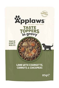 Šťavnaté jehněčí maso a jehněčí játra doplněná jemnou cuketou, karotkou a cizrnu v bohaté masové omáčce. Lahodná a zdravá pochoutka, které žádný pes neodolá. Doplňkové krmivo Applaws Taste Toppers vhodné pro psy již od tří měsíců věku obsahuje pouze přírodní suroviny.