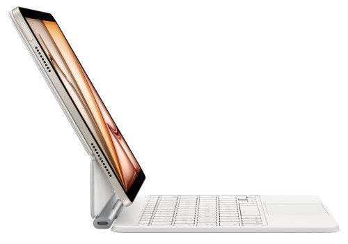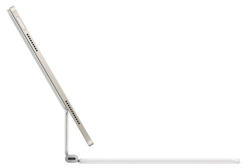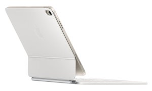 Klávesnice je vybavena také integrovaným touchpadem, který umožňuje ovládání pomocí gest a usnadňuje další práce s textem, navigaci, multitasking a činnosti s dalšími přidruženými aplikacemi. Design klávesnice Apple Magic přináší nastavitelný úhel pro komfortní práci u stolu nebo na gauči. Připojení tabletu ke klávesnici je pevné, ale současně snadné. Klávesnice svou konstrukcí rovněž funguje také jako ochranný obal.