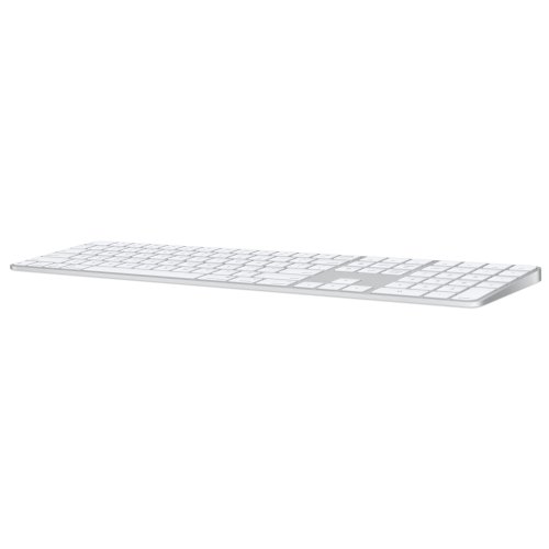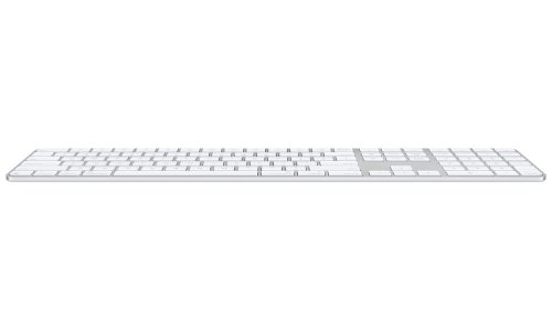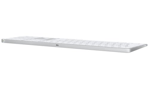 Bezdrátová klávesnice Apple Magic Keyboard s numerickou částí zajistí mimořádně pohodlné a přesné psaní. Klávesnice má rozšířené rozvržení s klávesami pro rychlou navigaci v dokumentech a velkými šipkami, které přijdou obzvlášť vhod při hraní her. Číselné klávesy usnadňují práci v tabulkových procesorech a ve finančních aplikacích. S Macem se spáruje automaticky, takže se můžete rovnou dát do práce. Integrovaný snímač Touch ID umožní rychlé, snadné a bezpečné ověřování uživatele při přihlašování a nakupování. Baterie má skvělou výdrž, na jedno nabití udrží klávesnici v chodu déle než měsíc.