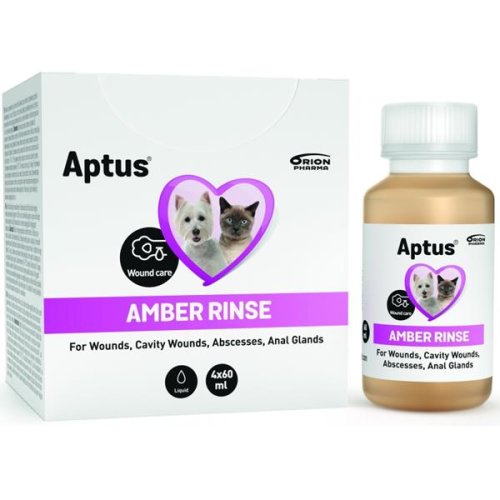 Aptus Amber Rinse je vodný roztok norské smrkové pryskyřice vyráběný ve Finsku, který podporuje přirozené procesy hojení ran: