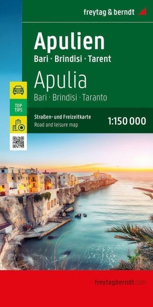 Kromě přehledného designu nabízí silniční a rekreační mapa Apulie mnoho dalších informací, jako jsou památky, kempy a vyhlídkové trasy. Rychlou orientaci umožňuje i rozsáhlý lokační rejstřík. ***** Série „Top Tips“ nabízí přílohu, ve které je stručně popsáno deset nejvýznamnějších památek regionu v několika jazycích. (italsky, německy, anglicky, francouzsky) ***** Nejlepší tipy na výlety, Mapa města Bari, Registr místa s PSČ