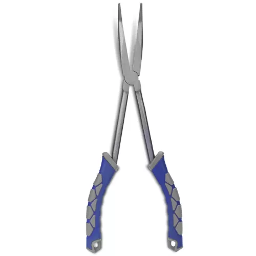 Tyto extra dlouhé kleště Aquantic jsou vyrobené z odolné karbonové oceli a mají ohnuté čelisti pro snadné vyproštění háčků nebo umělých nástrah, které sedí hluboko v tlamě ryby. Šedá PTFE povrchová vrstva zvyšuje odolnost proti opotřebení a rukojeti z TPR materiálu poskytují stabilní, pohodlný a neklouzavý úchop i v mokrých podmínkách.