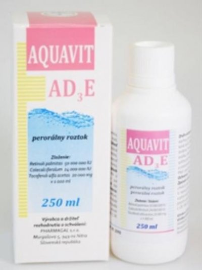 Vitamínový přípravek s obsahem v tuku rozpustných vitamínů A, D3, E upravených do vodorozpustné formy. Nedostatek vitamínu A v organizmu se projevuje poruchami vidění, neplodností, poruchami vývoje a růstu kostí, zpomalením růstu, poškozením epitelu sliznic a neurologickými poruchami. U drůbeže se navíc nedostatek tohoto vitamínu může projevit sníženou snáškou vajec, zdrsněním vaječné skořápky, opožděným líhnutím a zvýšeným úhynem při líhnutí. Při nedostatku vitamínu D v organismu zvířat vznikají poruchy výměny vápníku a fosforu, dochází k zpomalení ukládání vápníku do kostí rostoucích zvířat (rachitida), k deformacím kostí a kloubů, k poruchám růstu a u drůbeže se snižuje pevnost vaječné skořápky. Vitamín E působí jako antioxidant. Jeho nedostatek se může projevit poruchami v reprodukci zvířat, svalovou dystrofií mláďat a tukovou degenerací jater. U drůbeže ovlivňuje snášku a líhnivost vajec. Žlutý, téměř čirý až mírně opalizující roztok. Oblast užití: Poruchy plodnosti. Snížená kvalita skořápky vajec. Snížená snáška, opožděné líhnutí a životaschopnost vylíhnutých kuřat. Snížená imunita. Rachitida a osteomalacie. Cílový druh: Kur domácí, krůty, kachny, prasata, ovce, kozy, hovězí dobytek, koně, králíci. Složení: Retinoli palmitas 50 000 000 IU, Colecalciferolum 24 000 000 IU, Tocoferoli alfa acetas 20 000 mg v 1 000 ml. Pomocné látky: Benzylalkohol (E 1519), Propylenglykol, Polysorbát 80, Čištěná voda. Balení: 250 ml