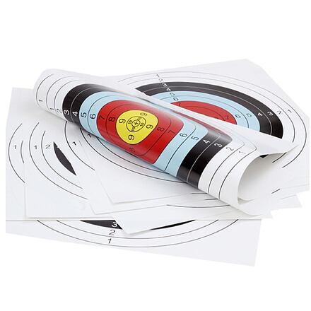 Merco Archer Aim 40 je balení deseti papírových terčů pro střelbu a lukostřelbu, ale můžete je použít například i pro šipky s kovovým hrotem. Rozměry papíru jsou 40 x 40 cm a průměr samotného terče je 37 cm. K těmto terčům doporučujeme i sadu kovových připínáčku Archer Aim Nails pro jejich upevnění k polystyrenu či jiné vhodné podložce. Procvičujte svou přesnost s papírovými terči Archer Aim. - materiál: papír - rozměry 40 x 40 cm - průměr terče: 37 cm