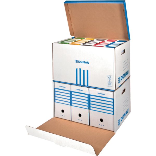 • Integrované víko, otevřené nahoru, což usnadňuje přístup k dokumentům bez vyjmutí krabic z hromadných beden