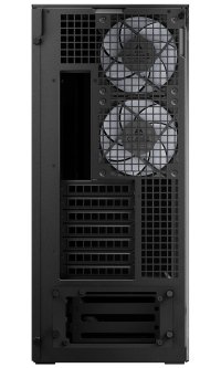 Předinstalované ventilátory P12 Pro (vzadu) dosahují rychlosti 600–3000 rpm s průtokem vzduchu 77 CFM. Boční P14 Pro Reverse ventilátory pracují v rozsahu 400–2650 rpm s průtokem 98 CFM pro efektivní odvod tepla.