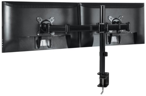 Nastavitelný držák pro dva monitory ušetří místo na pracovním stole. Držák je vhodný pro ploché LCD monitory o velikosti úhlopříčky 13" až 28" (pro ultraširoké max. 25") a hmotnosti do 2× 7,5 kg. Umožňuje snadné nastavení optimální výšky, náklonu i otočení monitorů. Snadno se připevní pomocí svorky na desku stolu. Intuitivní systém správy kabeláže minimalizuje nepořádek.
