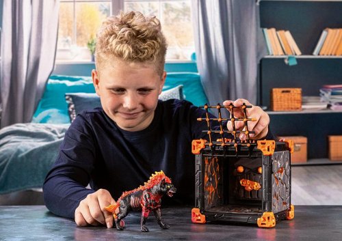 Lávová hyena se s rozzářenýma očima hrozivě nahrbí před svou arénou BattleCave. Kdo se odváží bojovat? Je to obrana krystalu světa, který je ukrytý v aréně BattleCave. V aréně je vidět podlá maska s krystalem v ústech. Strašidelné – a ano, ty oči vypadají jako střílející šípy! Ti, kteří se odváží vylézt na arénu BattleCave, musí být opatrní, protože se mříže snadno otevřou do záludné pasti. Jakmile se ocitneš v aréně BattleCave, lávová hyena tě rozhodně nenechá tak rychle znovu utéct… Arény ELDRADOR® CREATURES BattleCaves promění každý dětský pokoj v akční zónu! Kdo bude čelit dechberoucí bitvě? Všechny arény BattleCaves lze kombinovat. Na útočníky čekají děsivé tunely a záludné pasti. Ve velké aréně se pak mohou utkat v závěrečném souboji. To je ale boj! Rozměry balení: 23 x 16,5 x 28,5 cm. Věk: 7-12