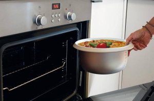 Velkým plusem je nádoba s nepřilnavým povrchem, která zvládne i 20minutový pobyt v troubě rozpálené na 180-200 °C. Pokud tedy chcete rýžovému nákypu dopřát zlatou kůrčičku navrch, nemusíte špinit další nádobí.