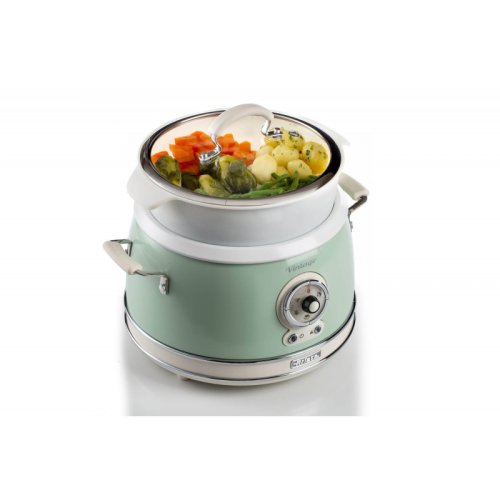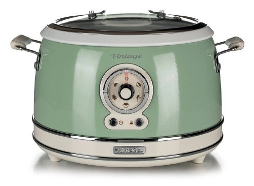 Rýžovar je praktický pomocník do domácnosti. Co kdyby toho ale uměl ještě víc? Retro hrnec od italského výrobce Ariete je specialista úplně na všechno. Jednoduchým pootočením kolečka ho proměníte v hrnec na pomalé vaření, parní hrnec nebo si připravíte třeba lahodnou omeletu. Máte chuť na zeleninu v páře? Zvolte program parního vaření, dejte zeleninu do parního koše a pár minut počkejte. Chcete si jen tak orestovat mořské plody? To taky zvládne. Skvěle připraví i takzvané “tažené” polévky nebo omáčky díky funkci pomalého vaření. S tímhle přístrojem zvládnete i několikachodové menu najednou. Multifunkční hrnec je dalším modelem řady Ariete Vintage, která klade důraz nejen na praktičnost, ale i na originální design. Tenhle přístroj budete jednoduše milovat.