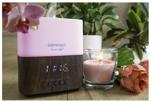 Aroma difuzér Light wood Concept DF2011 Perfect Air nabízí mnoho využití. Můžete ho využít pro aromaterapii, jako zvhlčovač vzduchu, Bluetooth reproduktor nebo budík. Má 300 ml nádobkou na vodu, která poskytuje až 10 h nepřetržitého provozu.