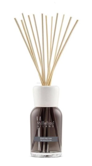 Aroma difuzér Černý čaj a růže je uklidňující a noblesní vůně, inspirovaná arómatem černého čaje a rooibosu, které se mísí s dechem bílé růže. Skleněná lahvička je zakončena elegantním keramickým kroužkem. Po vyprchání vůně lze jednodušše koupit pouze náplň a po vymytí lahvičky doplnit libovolnou vůní.