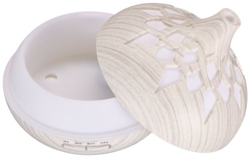 Než spustíte difuzér, sejmete jeho kryt. Ke spodní straně základny připojíte konektor napájecího adaptéru. Zatím ho nezapojujete k zásuvce. Do nádobky nalijete vodu. Hladina nesmí přesahovat vyznačenou rysku pro maximální množství. Do vody nakapete několik kapek esenciálního oleje (přibližně 2 až 3 kapky na 100 ml). Nasadíte zpátky kryt difuzéru a zapojíte ho do zásuvky. Po stisknutí tlačítka „MIST“ si vyberete dobu provozu – 1 hodina, 3 hodiny, 6 hodin nebo nepřetržitý provoz. Po prvním spuštění může výroba páry trvat přibližně 3 minuty až 10 minut. Pokud tlačítko přidržíte delší dobu, nastavíte si také intenzitu páry. Difuzér vypnete, když 5x zmáčknete tlačítko „MIST“.