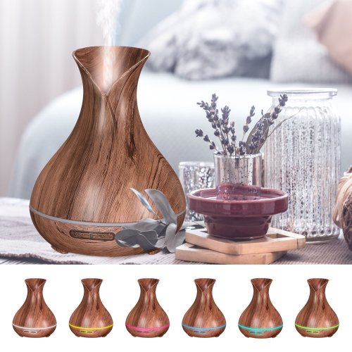 Každého milovníka aroma difuzérů potěší svým nadčasovým designem. Zapadne skvěle do každého interiéru. I přes svůj vzhled nabízí nejen aromaterapii, ale i chromoterapii. Ta pomáhá v léčbě alternativní medicíny (barvy mají uklidňující schopnosti a pomáhají lidem naladit harmonii duše). Na výběr je ze 7 barev. Ty si snadno změníte pomocí tlačítka LIGHT.