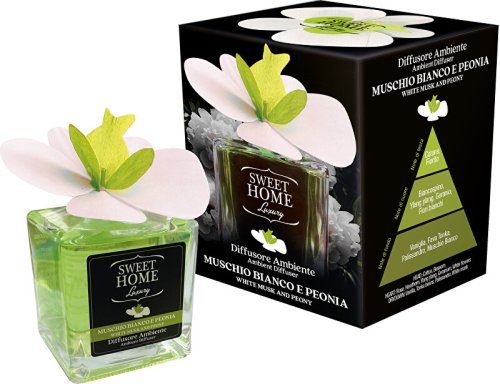Stylový aroma difuzér s vůní pivoňky a bílého pižma skvěle provoní váš domov. Působí zhruba 6 týdnů.