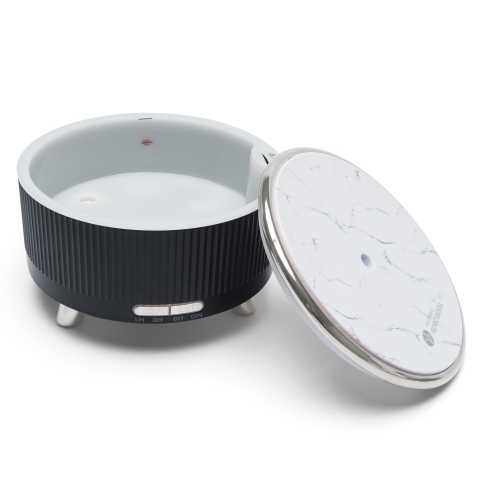 Stylový aroma difuzér, zvlhčovač vzduchu a noční světlo v jednom pro odpočinek a relaxaci. Je ideální pro zvlhčení vzduchu v místnosti nebo pro vytvoření příjemné domácí atmosféry s použitím éterických olejů.