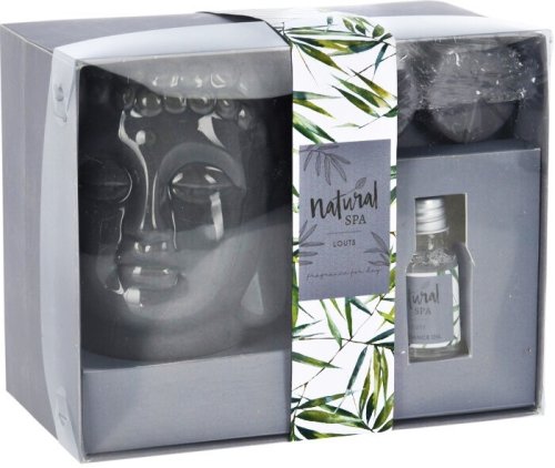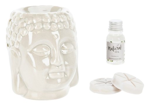 • dárková sada aromalampy ve tvaru BUDDHY- součástí setu je také startovací vonná sada, olej a vosky- keramická aromalampa rozpouští vonný vosk nebo olej pomocí čajové svíčky, která se umisťuje do spodní části aromalampy- otvor pro svíčku je v zadní části aromalampy- balení obsahuje celkem 4 kusy:- 1x keramická aromalampa 9 x 11,5 cm- 1x vonný olej 10 ml- 2x vonný vosk- barva: krémová- značka: Homestyling
