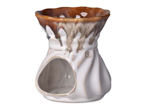 Aromalampa z bílé keramiky s hnědými akcenty je ideální pro vonné vosky či oleje. Elegantní kombinace barev se hodí do každého interiéru a spolu s jemným světlem svíčky navodí relaxační atmosféru.