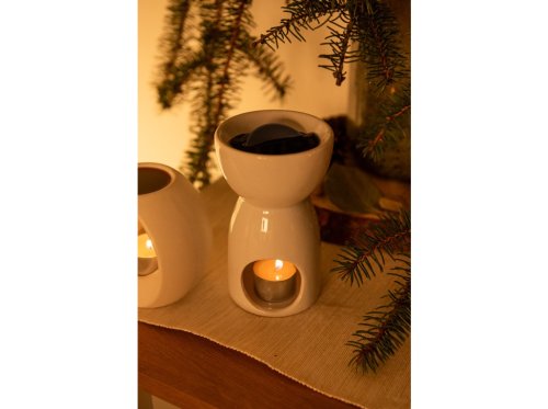 Tato keramická aromalampa je ideálním doplňkem pro váš domov. Stačí do horní misky vložit vonný vosk nebo několik kapek aromatického oleje s trochou vody a zapálit čajovou svíčku. Jemné světlo plamínku spolu s příjemnou vůní vytvoří relaxační a harmonickou atmosféru. Díky minimalistickému designu se aromalampa snadno hodí do každého interiéru.