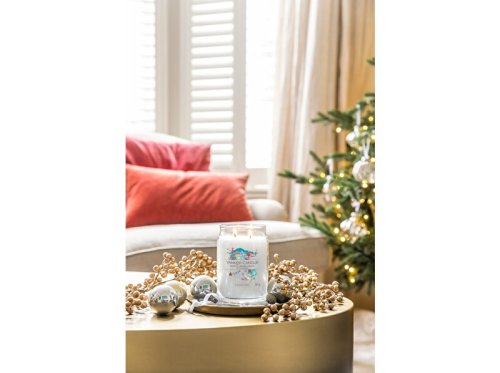Noci o Vánocích rozzáří mihotavá barevná světýlka a vůně mražené hrušky, mátových listů, jasmínu a vanilky. Svíčka má 2 knoty a obsahuje hladkou směs se sójovým voskem a nejkvalitnější vonné přísady.