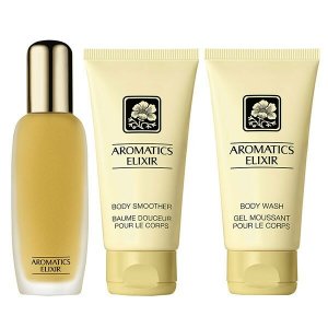 Aromatics Elixir od značky Clinique je silná, teplejší, květinově-dřevitá dámská vůně. Je vhodná pro sebevědomé a cílevědomé ženy, které se před ničím nezastaví. Její složení je velmi bohaté a jedinečné. Úvod vůně tvoří heřmánek, aldehydy, muškátová šalvěj, koriandr, pelargonie, citronová verbena, brazilský palisandr a bergamot. Srdce v sobě ukrývá pestrou paletu sladkých květinových vůní a v základu nalezneme santalové dřevo, pižmo, pačuli, kadidlo, vetiver a dubový mech.