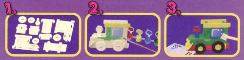 Postup: dílky opatrně vylomte z archu a podle obrázku sestavte. Nabarvěte a ozdobte pomocí vytlačovacích obtisků podle své fantazie.