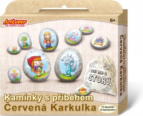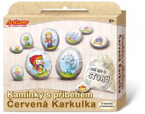 Všechny kamínky nejprve omyj a nech oschnout. Odstraň fólii ze zadní strany přenosové samolepky. Samolepku umísti zadní stranou tam, kde chceš mít obrázek. Pomocí špachtle obrázek přenes na kamínek. Pořádně přitlač a snaž se samolepkou nehýbat. Je-li obrázek přenesen, velmi opatrně snímej již prázdnou část samolepky. Přenesený obrázek ještě jenou opatrně uhlaď. Kamínky jsou hotové! Pokus se podle nich vyprávět příběh. Budeš potřebovat nůžky. Obsahuje: 10 kamínků, 2 archy přenosových samolepek, 1 špachtle, 1 bavlněný sáček.