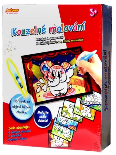 Vhodné pro děti od 3 let. Postup: Otevřete kouzelný štětec a naplňte štětec vodou a uzavřete. Můžete začít malovat a obrázek se zbarví a voda se po chvili ztratí Sada obsahuje 6 kouzelných obrázků, 6 rámečků,"kouzelný štětec". Do štětce nalijte vodu a malujete s ním na obrázek, obrázek se po použití vody objeví a až voda zaschne -cca 3 minuty zase zmizí a můžete malovat znovu. Velikost boxu 19 x 22 x 3,5 cm.