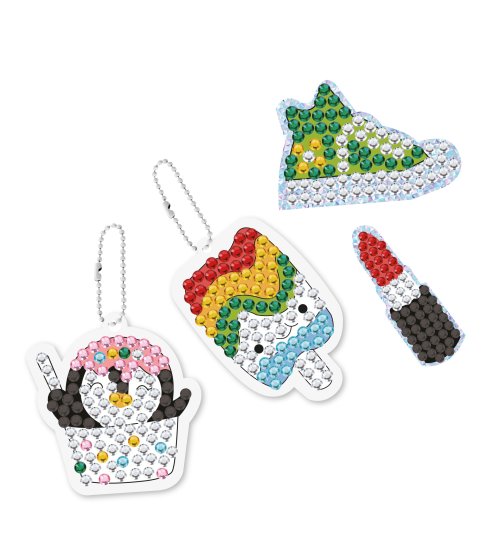 S touto sadou se z každého dítěte stane klenotník. Stačí přilepit diamanty podle předlohy a během chvíle vzniknou originální přívěsky a samolepky, které se budou krásně třpytit. Hotové přívěsky si děti mohou připnout na batoh, penál nebo je darovat kamarádům.