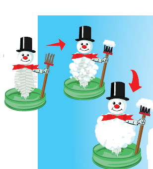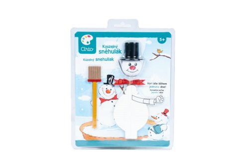 Výroba sněhuláka. Sestav sněhuláka z papíru, nalij kouzelnou tekutinu do mističky a divej se, jak se sněhulák tvoří.