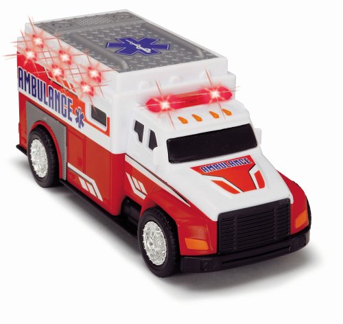 Auto ambulance na volnoběh se světelným a zvukovým efektem. Otevírací zadní dveře. Délka 15 cm.