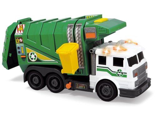 Popelářské auto zelené na volnoběh vč. popelnice. Zvukové a světelné efekty, sklopný nákladový prostor, otevírací zadní panel. Délka 39 cm.