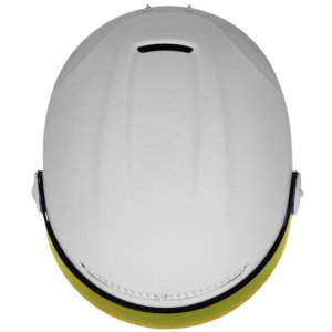 Moderní lyžařská přilba s integrovaným zorníkem s výrazným zrcadlovým efektem.
