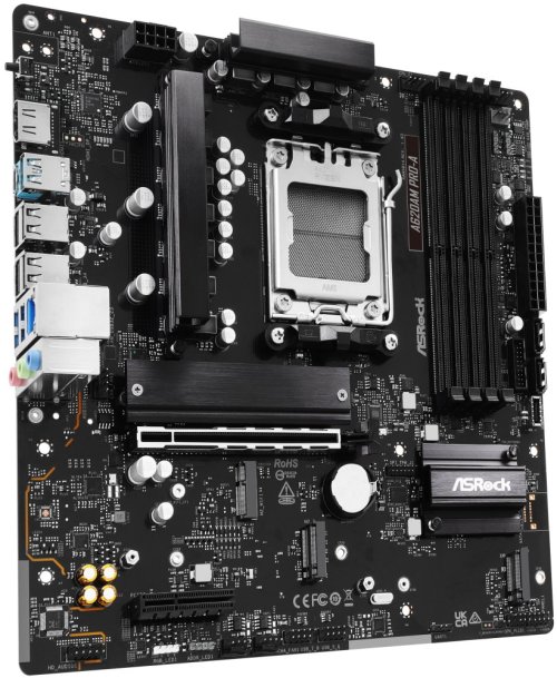 Základní deska disponuje 6+2+1fázovým napájením s Dr.MOS pro spolehlivý přísun energie do procesoru a následný stabilní chod i velmi náročných aplikací. Přítomny jsou takové volné sloty pro operační paměť typu DDR5 , které pojmou až 256 GB. Model ASRock A620AM Pro-A si poradí také s instalací moderních grafických karet, nebo ultra rychlými SSD jednotkami , které napěchujete do M.2 slotů.