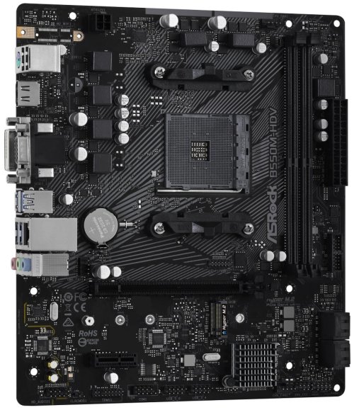 Výkonná základní deska ASRock B550M-HDV pro stavbu moderního PC systému. Podporuje procesory AMD Ryzen 3. a vyšší generace a až 64 GB paměti DDR4, pro které je připravena dvojice slotů.