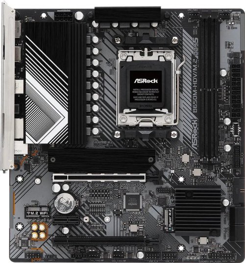 Základní deska ASRock B650M-HDV/M.2 pro stavbu moderních a pokročilých PC systémů, které jsou založeny na procesorech AMD Ryzen série 7000. VRM design s integrovaným řešením Dr.MOS podporuje optimalizované napájení a přesný přísun energie. V porovnání s tradičními MOSFEty je celkový účinek a výkon vyšší. Pro operační paměť je k dispozici dvojice slotů s maximální kapacitou 64 GB RAM typu DDR5. Paměť DDR5 je chráněna pomocí speciálního obvodu a snižuje riziko poškození skrze střídavé napájení apod.