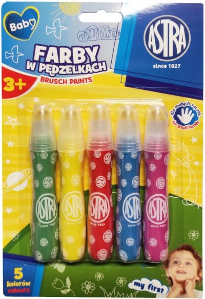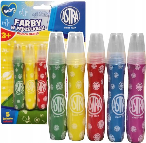 Pět barev v praktických štětcích – každý štětec obsahuje barvu, což eliminuje potřebu dalších nástrojů. Ideální pro děti od 3 let – navrženo pro malé ruce, podporuje kreativitu a jemnou motoriku. Bezpečné složení – neobsahuje škodlivé látky, vyrobeno v souladu s evropskými normami. Snadné použití – stačí jemně stlačit tělo štětce a barva se uvolní, což usnadňuje malování. Vhodné pro malování na papír a karton – ideální pro domácí tvoření i školní aktivity.