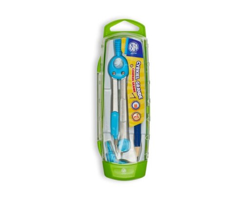 kovové kružítko v barevném provedení v praktickém plastovém obalu součástí balení je i lahvička s náhradními tuhami do kružítka, tužka a úchyt na tužku
