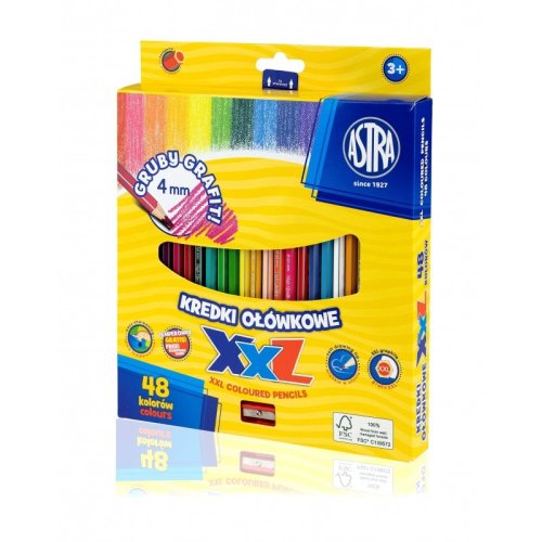 Barevná zábava s pastelkami - do školy i pro kreslení doma! Šestihranné pastelky s XXL tuhou jsou ideální pro malé umělce, kteří objevují svět kreslení a barev. Souprava obsahuje 48 pastelek v krásných sytých barvách. Součástí balení je i ořezávátko. Výrobek má certifikační značku FSC, svým nákupem podporujete lesní hospodaření šetrné k přírodě a místním lidem.