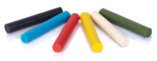 Balení obsahuje: 6 barevných špalků (bílá, černá, žlutá, červená, zelená, modrá).