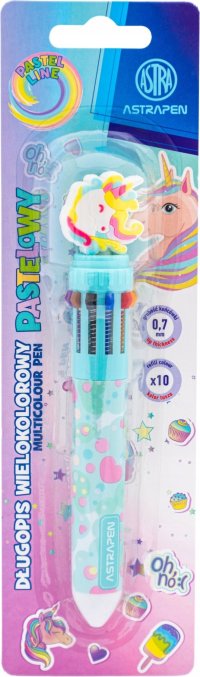 Propiska s deseti barevnými náplněmi v pastelových tónech. Vlastnosti: