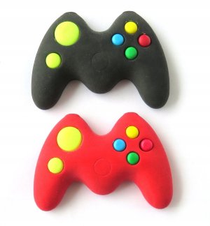 Barevná pryž s motivem herního ovladače pro přesné mazání – ideální do penálu každého školáka.