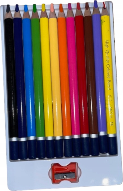 Délka pastelky: 17,5 cm. Balení obsahuje: 12 pastelek (11 jednobarevných a 1 vícebarevnou) a ořezávátko.