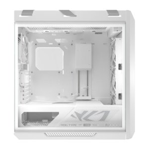 Herní skříň ROG Strix Helios II EATX typu mid-tower s dvojitými bočními panely z tvrzeného skla, podporou grafických karet o délce až 450 mm, hliníkovým rámem a předním panelem, výztuhami pro grafické karty a podporou 420mm radiátoru.