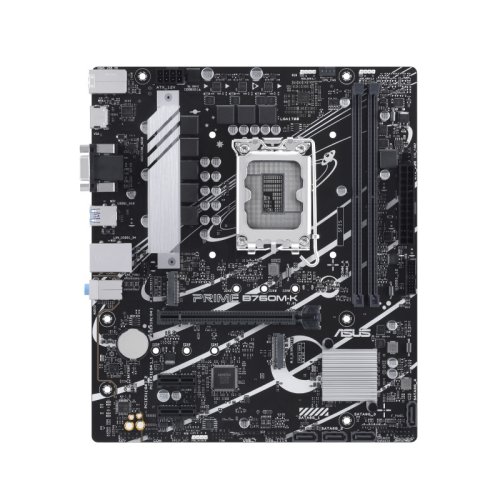 Základná doska ASUS Prime B760M-K s procesorom Intel® B760 LGA 1700 vo formáte mATX, PCIe 4.0, dva PCIe 4.0 M.2 sloty, DDR5, Realtek 2,5 Gbit Ethernet, VGA, HDMI™, SATA 6 Gbit/s, predný USB 3.2 Gen 1, Aura Sync