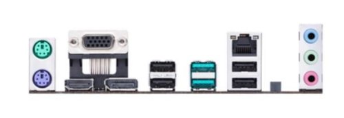 Externí porty: *2 x USB 3.2 Gen 2 ports (2 x Type-A) *4 x USB 2.0 ports (4 x Type-A) *1 x DisplayPort *1 x HDMI port *1 x D-Sub port *1 x V-M.2 slot (Key E) *1 x Intel 1Gb Ethernet port *3 x Audio jacks *1 x PS/2 Keyboard (purple) port *1 x PS/2 Mouse (green) port