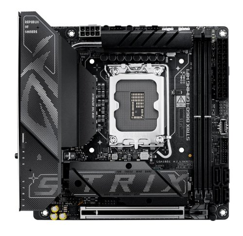 ROG Strix B860-I Gaming WiFi je navrhnutý tak, aby dominoval s procesormi Intel® Core™ Ultra (séria 2). Jeho pokročilý dizajn napájania a riešenia AI poháňajú špičkový výkon, zatiaľ čo sloty Thunderbolt™ 4, WiFi 7 a vysokorýchlostné DDR5 ponúkajú špičkovú konektivitu.