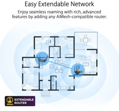 - ASUS RT-AX52 Extendable Router - Vychutnejte si bezproblémový roaming s bohatými pokročilými funkcemi přidáním libovolného routeru kompatibilního s AiMesh.